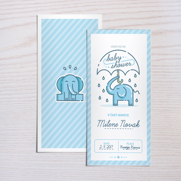 Vabilo z vzorcem modrega slončka.