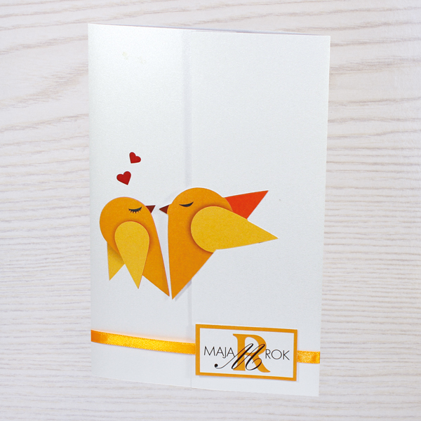 Dodan svilen trak po želji. Ptiček na vabilu je obrezan po silhueti.
