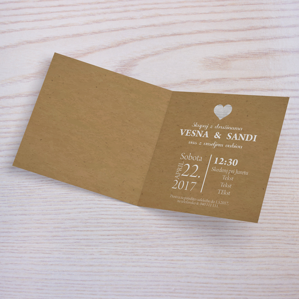 Vabilo je lahko natisnjeno na mat 300g papir ali na 300g pearl papir, ki je nekoliko svetleči (izberete lahko pod okencem za tekst).