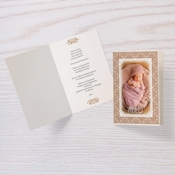 Vabilo s klasičnim vzorcem v rjavi barvi.