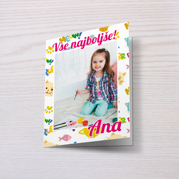 Na naslovnici in v notranjosti voščilnice lahko dodate tekst po želji.