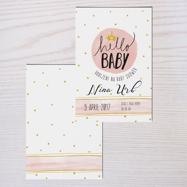Vabilo z zlato-roza modnim vzorcem.Poljubno lahko prilagodite tekst.Vabilo 10x15 cm ali 15x20 cm.