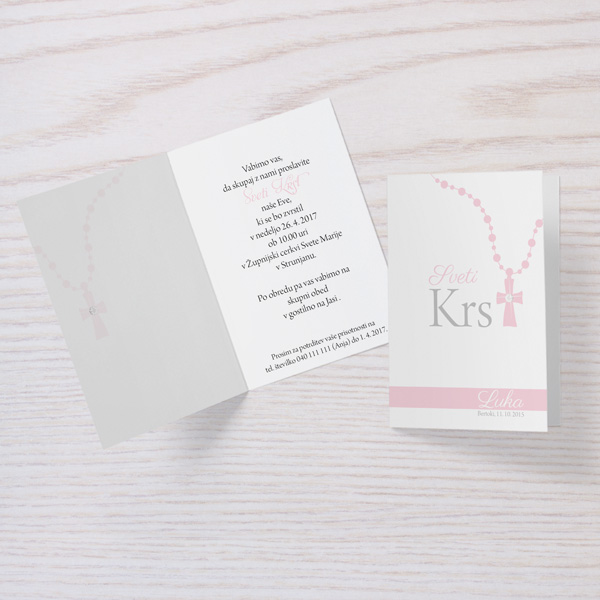 Vabilo za krst z grafiko križa v modri barvi.Poljubno lahko prilagodite tekst na naslovnici in v notranjosti vabila.Vabilo 10x15cm - 1x zgibano.