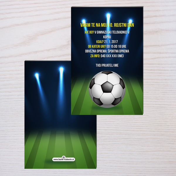 Vabilo za otroke z vzorcem nogometnega igrišča.