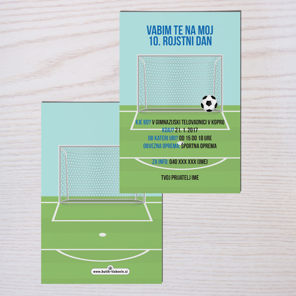 Vabilo za otroke z vzorcem nogometnega igrišča.Poljubno lahko prilagodite tekst.Vabilo 10x15 cm ali 15x20 cm.