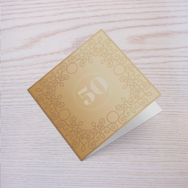 Vabilo v zlati barvi z vzorci.Poljubno lahko prilagodite tekst.Vabilo 14x14cm, 1x zgibano.