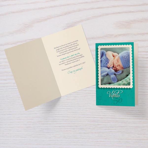 Vabilo v zeleni barvi s starinskim okvirjem.Poljubno lahko prilagodite tekst na naslovnici in v notranjosti vabila.Vabilo 10x15cm - 1x zgibano.